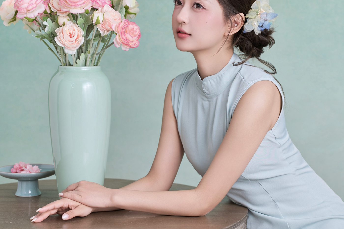 青绿色旗袍新中式
